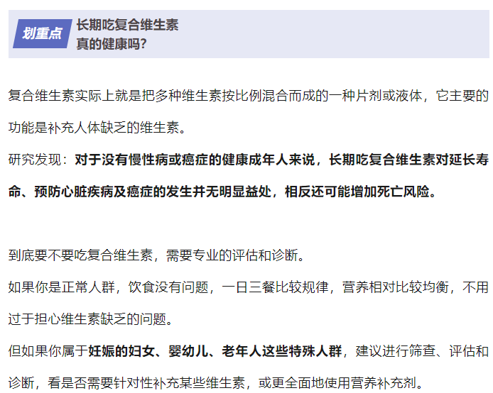 长期吃复合维生素,可能增加死亡风险?